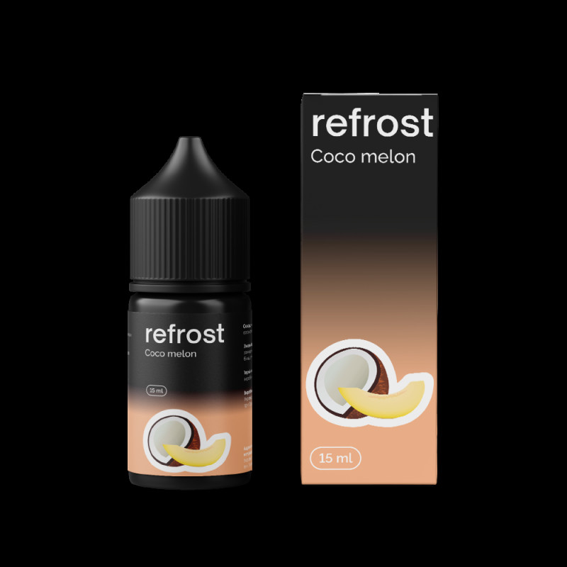 Refrost Coco Melon (солодка диня з кокосом): Солодка диня та ніжний кокос створюють тропічний мікс, що приносить відчуття літнього відпочинку. Цей аромат дарує легкість і гармонію.